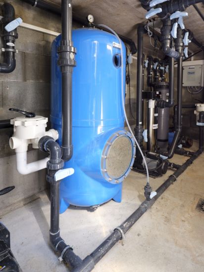 Filtration haut rendement double : 2 filtres Calplas haut rendement 16m3/h média filtrant Média-Clear (verre) + pompe 1cv SPECK BADU